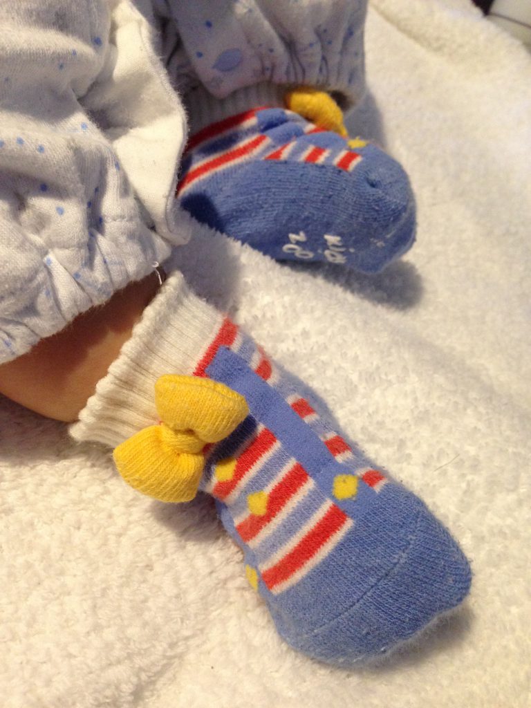 靴下を履かせるのも一苦労。