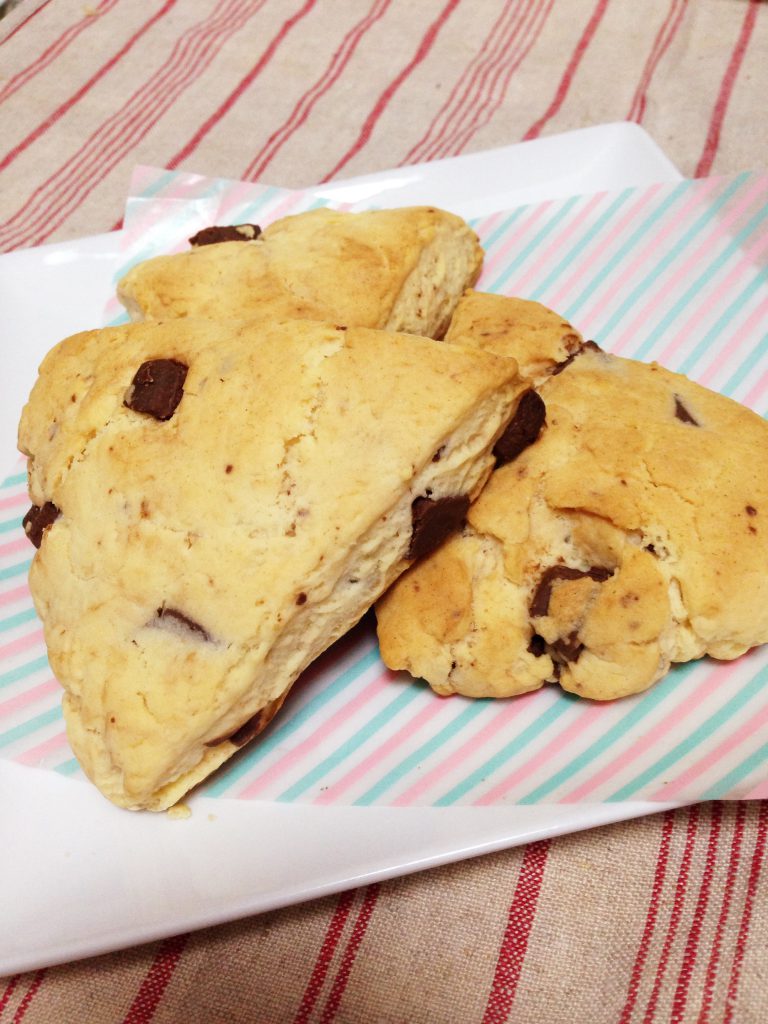 今日はポンちゃんがお昼寝している間にチョコチップスコーンを焼きました。