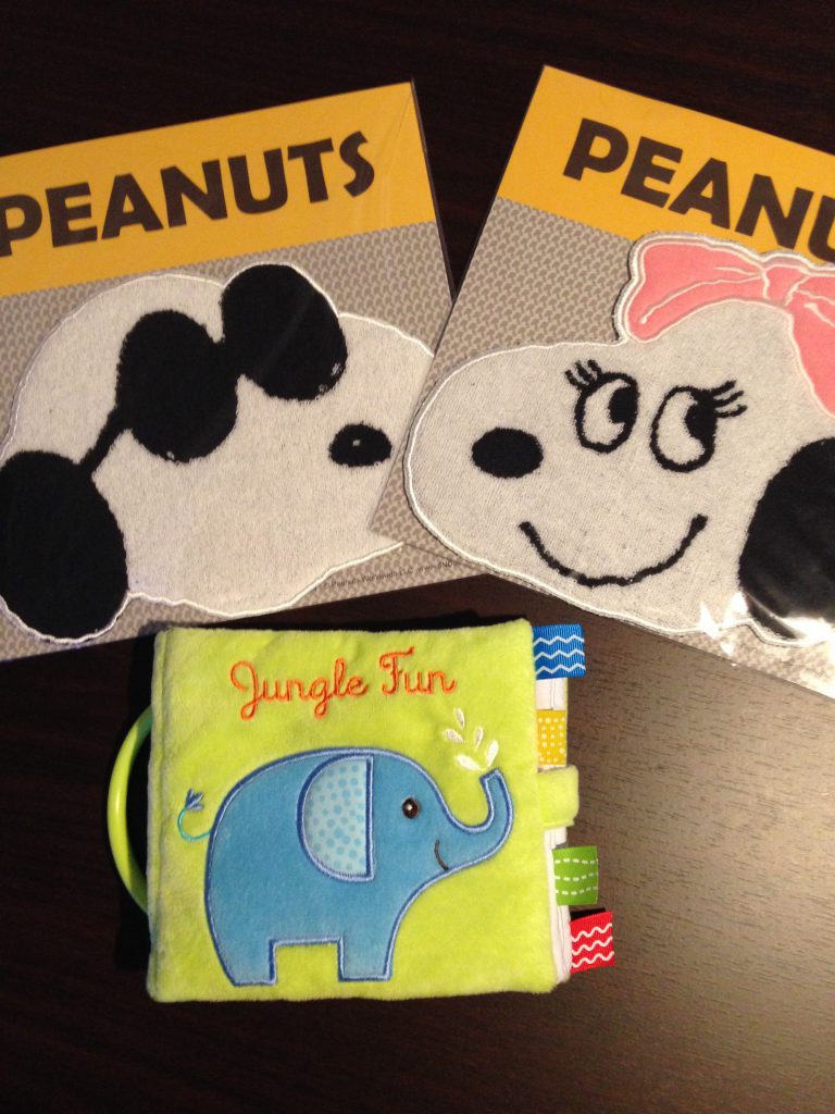 このおもちゃ、持つとカサカサとビニールの音がして、横のタグが赤ちゃんでも掴みやすくなっていました。