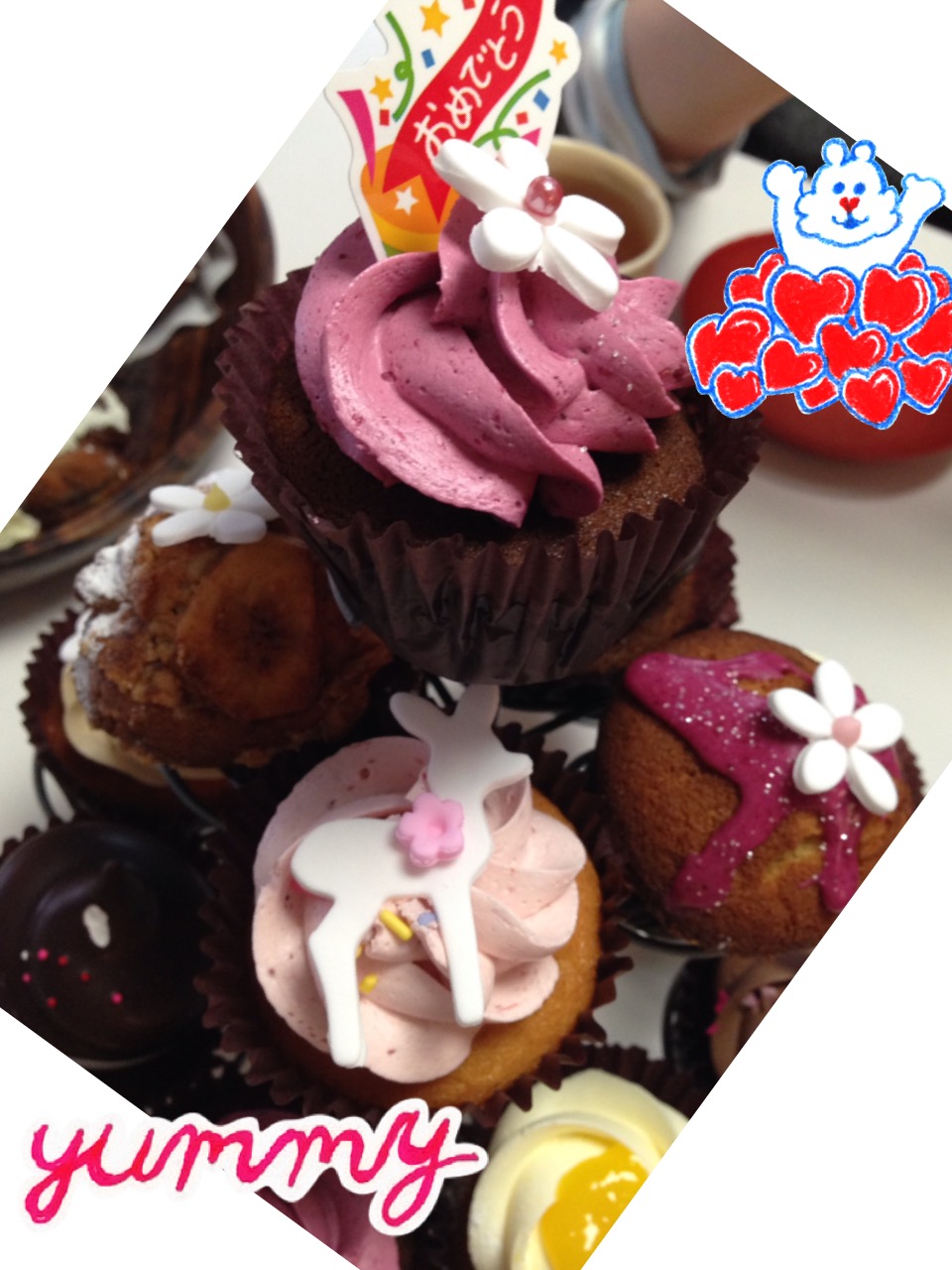 お祝い事だったので一番上のカップケーキにはおめでとうの文字が!!