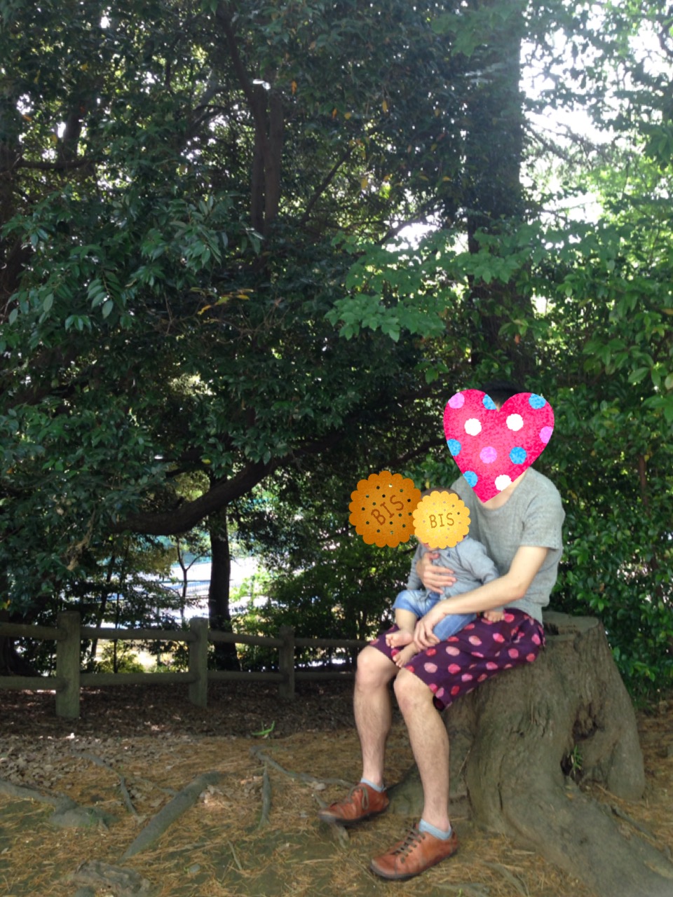 ちょうどいい切り株を見つけるも、この時蚊に刺される・・・。