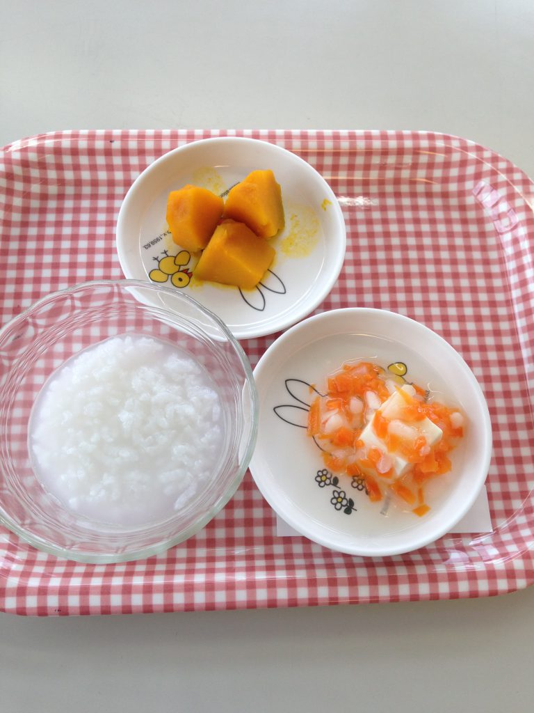 この日は7倍がゆに豆腐の野菜あんかけ、かぼちゃの出汁煮でした。