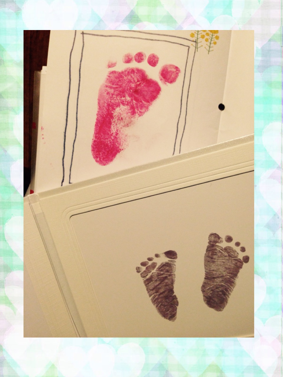 下の黒い足型は産まれたばかりのポンちゃん。