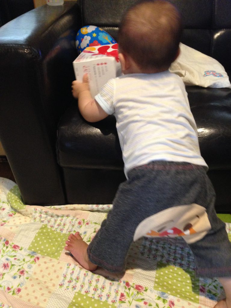 つかまり立ちが出来るようになったと思ったら、つたい歩きもするようになりました。