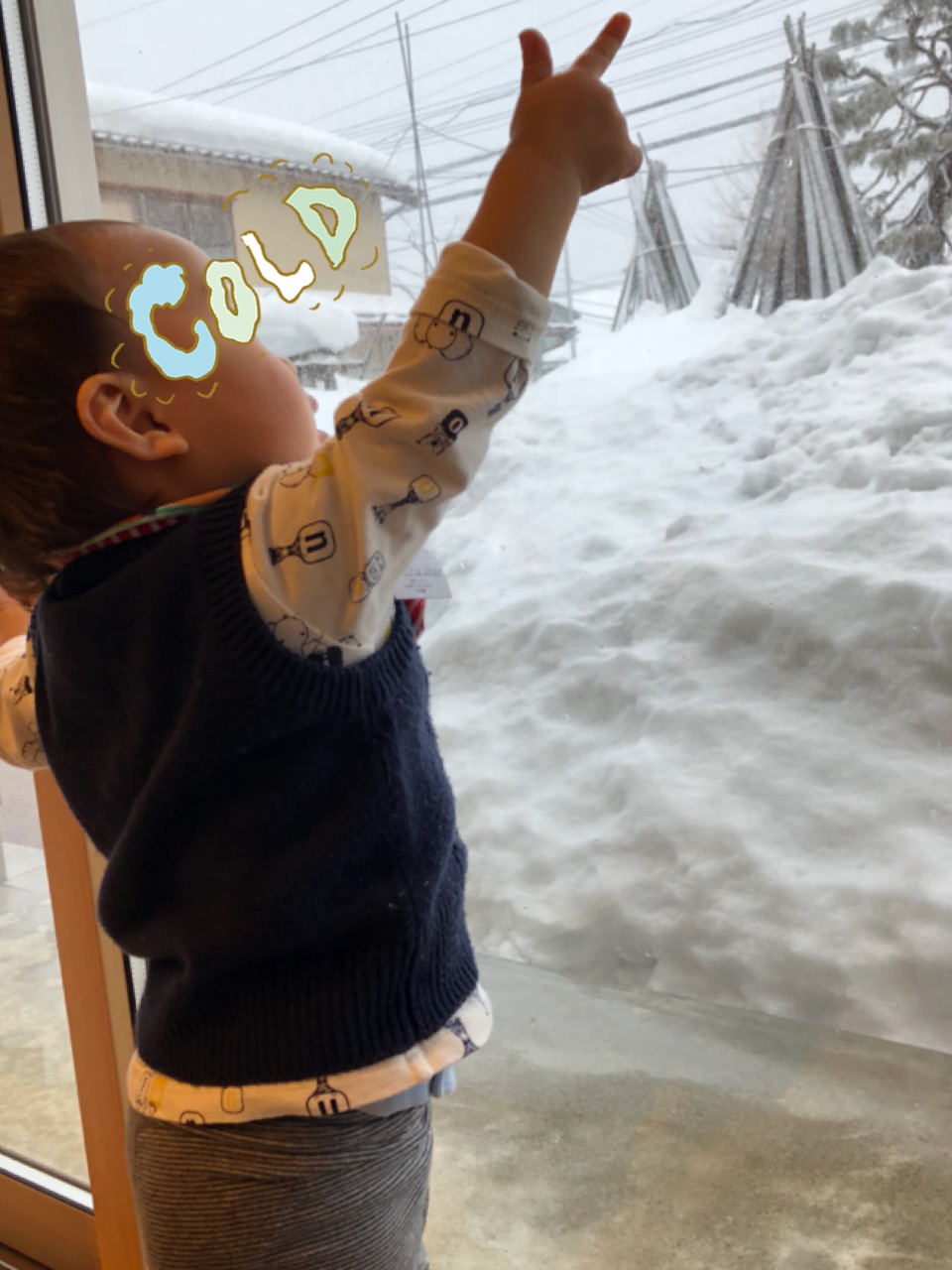ポンちゃんも大量の雪を見て「うおー」「うおー」と興奮気味な反応。