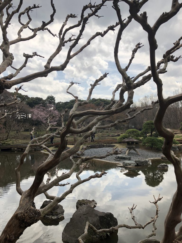 江戸城の正門である大手門を越え、そびえ立つ石垣とたくさんの草花。