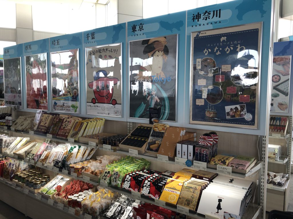 展望室の中には全国のPRポスターの展示と特産品やお土産も販売。