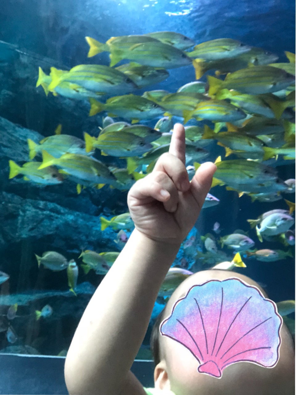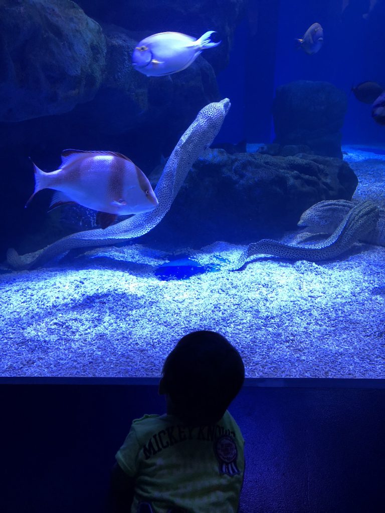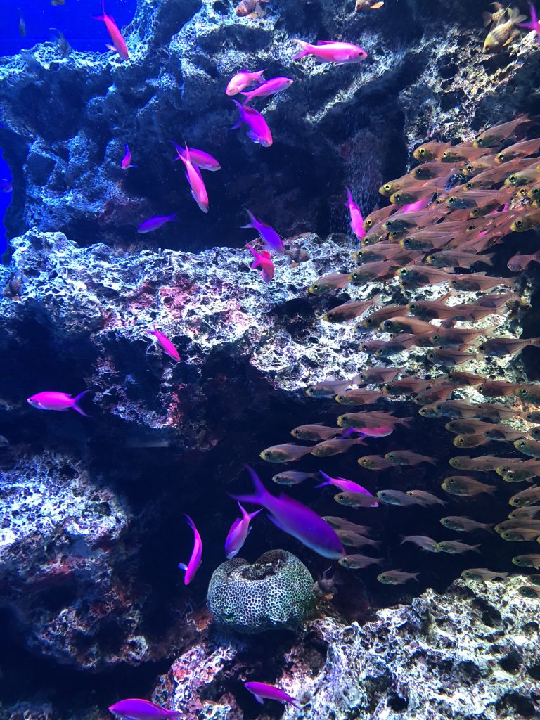 個人的にはこのピンクのお魚と群れをなすお魚の水槽がきれいでした。